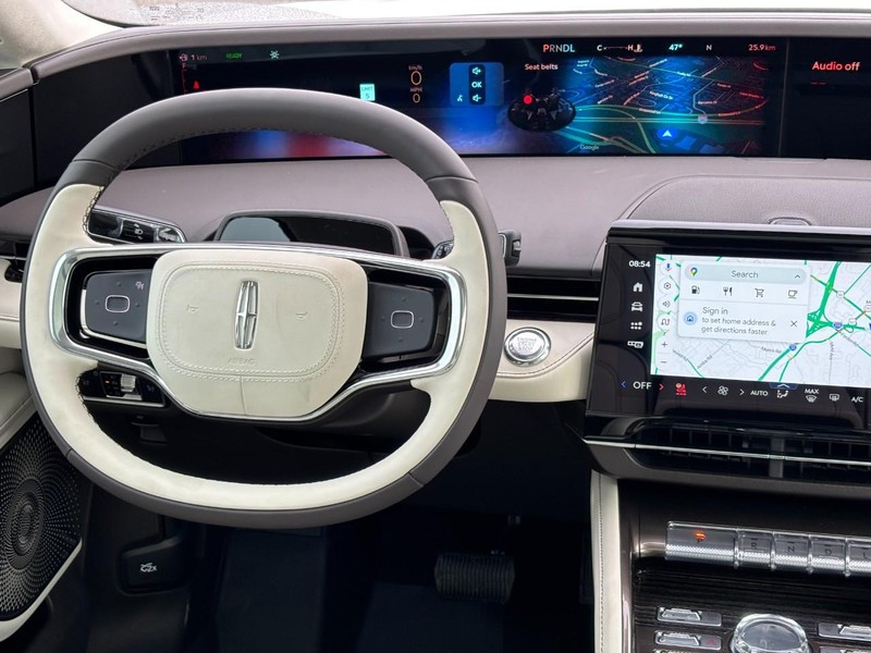 Our Lincoln Black Label Nautilus cabin advances the notion of sanctuary with an exclusive design theme, heated/ventilated/massaging leather power front and heated second-row seats, a heated leather power steering wheel, multi-zone automatic climate control, keyless access/ignition, and symphonic chimes that sound great with the Revel Ultima 28-speaker audio system. A full-dash 48-inch display delivers incredible digital benefits, complementing an 11.1-inch touchscreen, Android Auto, Apple CarPlay, Google Maps, wireless charging, WiFi compatibility, Bluetooth, and voice control.
